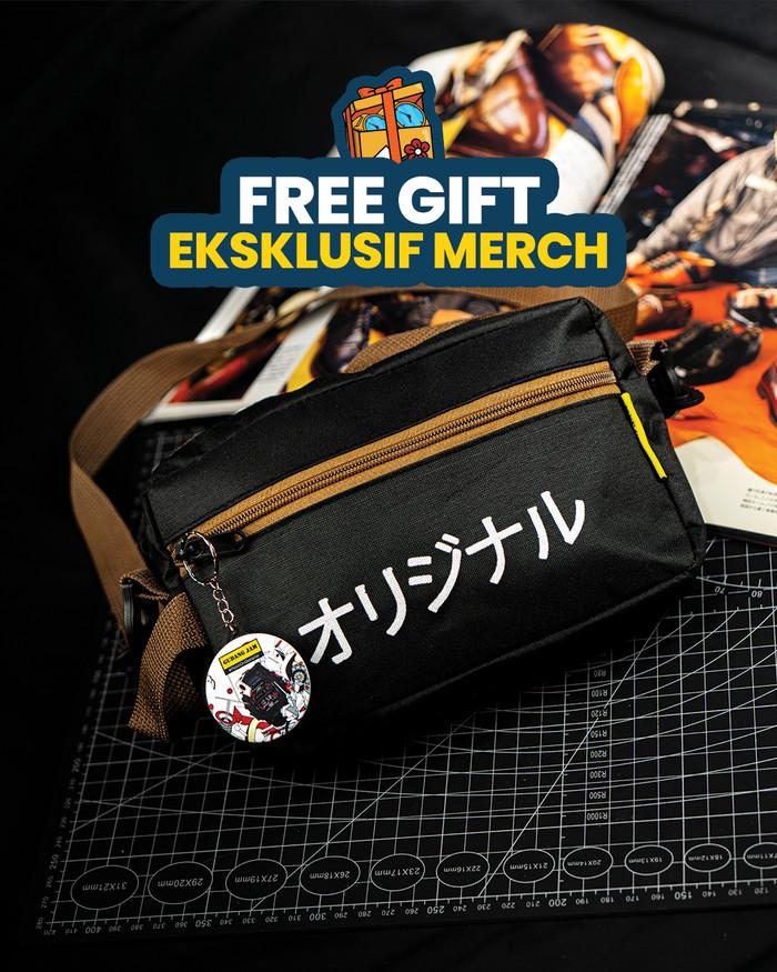 MERCHANDISE T-SHIRT HITAM / TAS SELEMPANG SERBAGUNA, T-SHIRT + TAS PRIA SLINGBAG