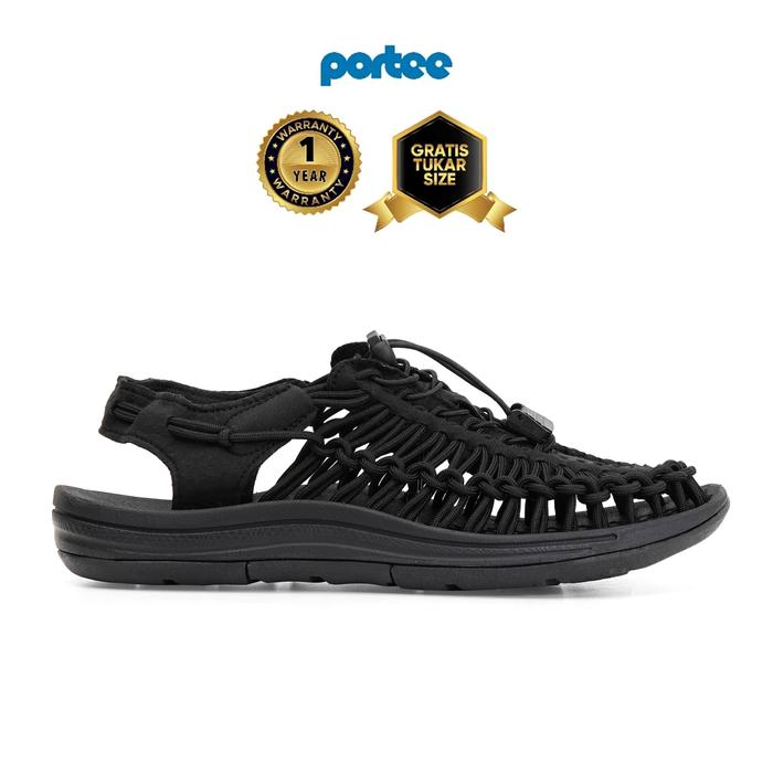 SANDAL PRIA PORTEE LOOM BLACK – SANDAL TRAVELING STYLISH | ANTI SLIP, EMPUK, RINGAN | HEALING & JALAN JAUH | SANDAL OUTDOOR | MEN SANDAL - 39