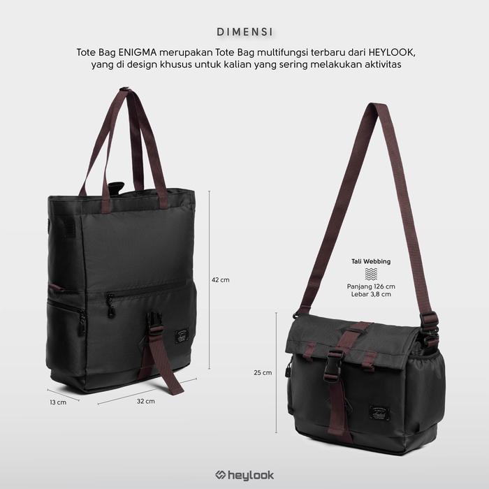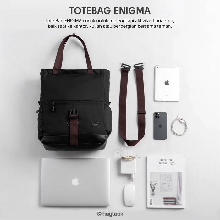 TOTE BAG LAPTOP ENIGMA TAS SELEMPANG MULTIFUNGSI PRIA WANITA HEYLOOK - BLACK