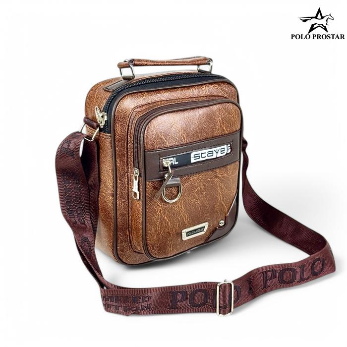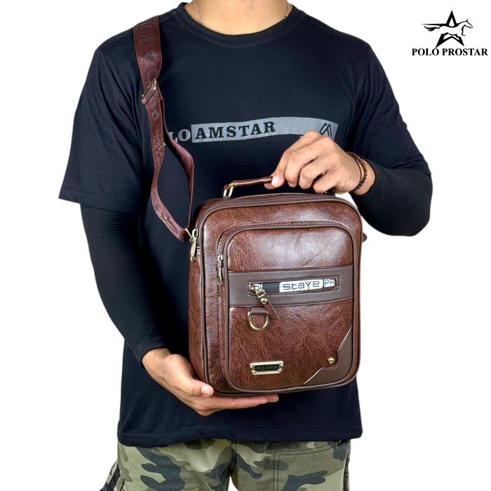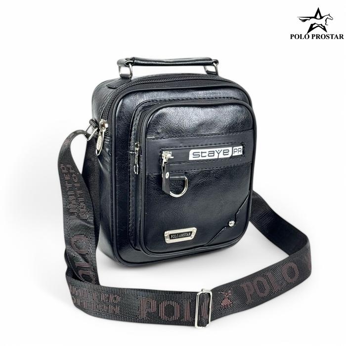 TAS SELEMPANG KULIT PU 10" INCH POLO AMSTAR TAS KANTOR TAS JINJING SLINGBAG PRIA - HITAM