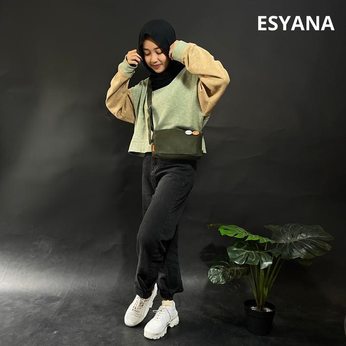 (GRATIS PIN) PUSHOP TAS SELEMPANG PRIA WANITA ESYANA - SLINGBAG UNISEKS KOREAN STYLE FREE 2 PIN BROS SLING BAG KANVAS KASUAL LOCAL ORIGINAL - HITAM