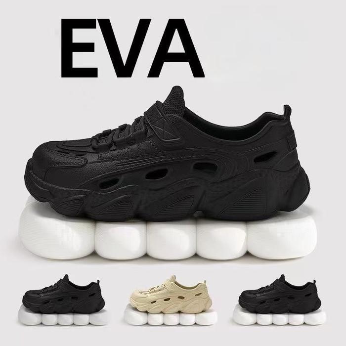 SEPATU SANDAL PRIA WANITA SLIP ON EVA RINGAN ELASTIS ANTI SLIP CASUAL EMPUK - HITAM, 39-40
