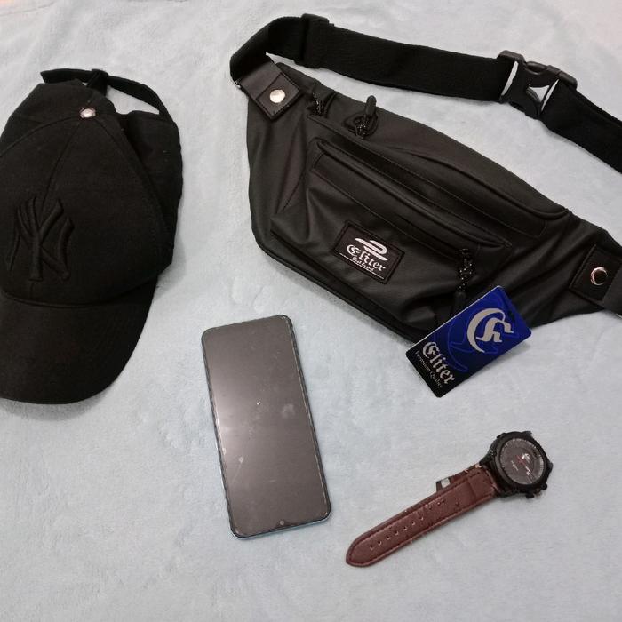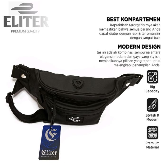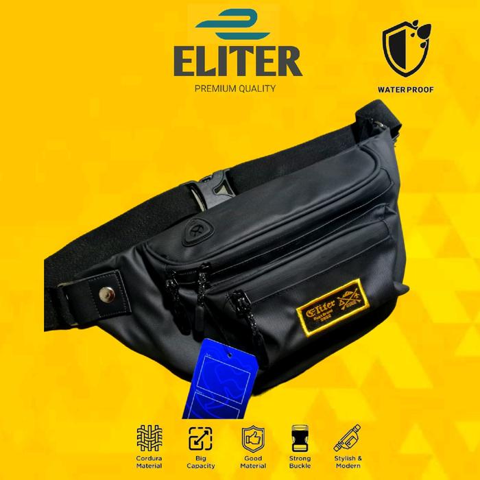 ELITER ATTA WAISTBAG || TAS SELEMPANG ANTI AIR PRIA DAN WANITA, WAISTBAG WATERPROOF & TERBAGI KE 4 KOMPARTEMEN, TALI IKATAN YANG KUAT, COCOK UNTUK FF, FREEFIRE SATIN MINIMALIS - LOGO PUTIH