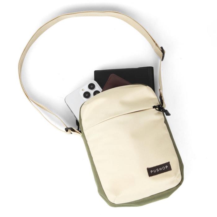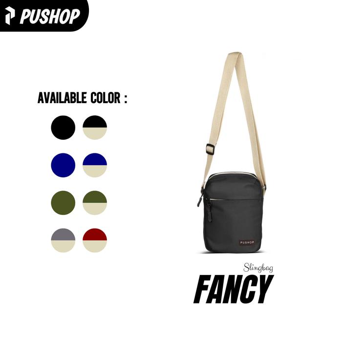 PUSHOP TAS SELEMPANG PRIA WANITA FANCY - SLINGBAG PRIA WANITA CASUAL MINI SLING BAG POLOS UNISEX CASUAL - NAVY-KREM
