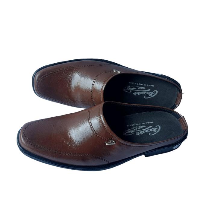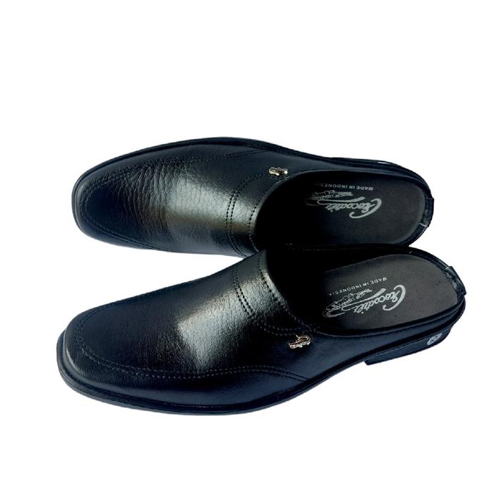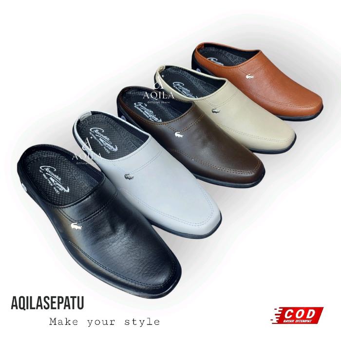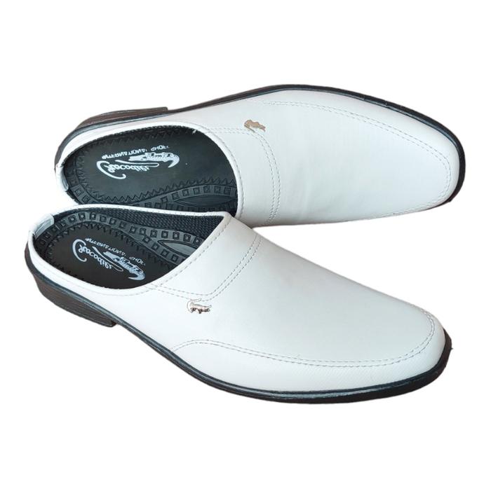 SEPATU SANDAL SELOP BUSTONG PRIA KERJA KULIAH FORMAL SANTAI KULIT SINTETIS SHOES SENDAL SEPATU FLAT SELOP KASUAL PANTOFEL - PUTIH, 38