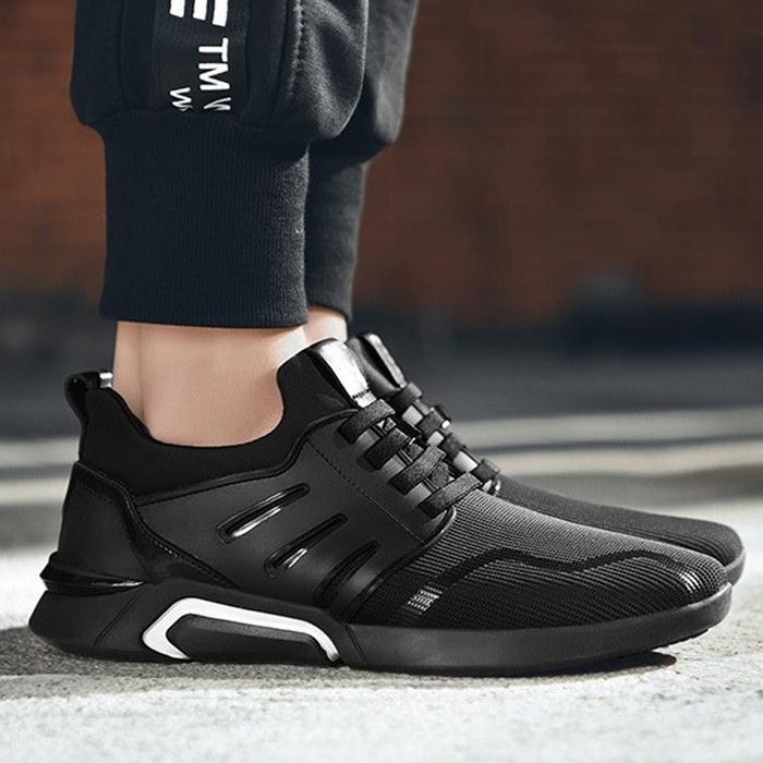 LEEDOO SEPATU PRIA SNEAKERS RUNNING KARET FASHION CASUAL SHOES KERJA PRIA HITAM POLOS F15 - HITAM POLOS , 40