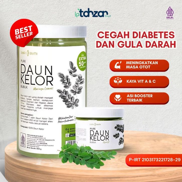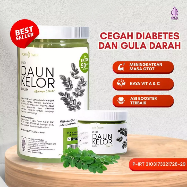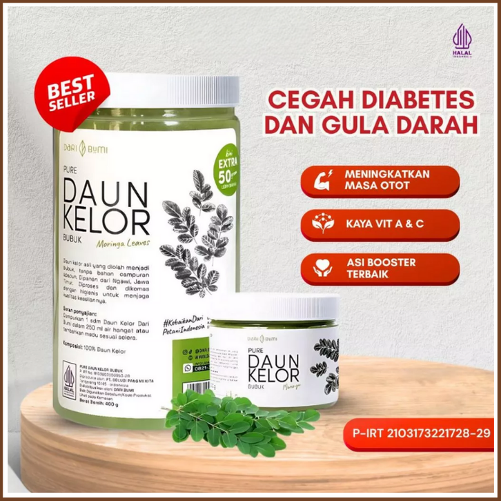 Daun Kelor Bubuk Moringa Daribumi 400 gr Extra 50gr Pure Serbuk Daun Kelor Halus Organic Cegah Diabetes