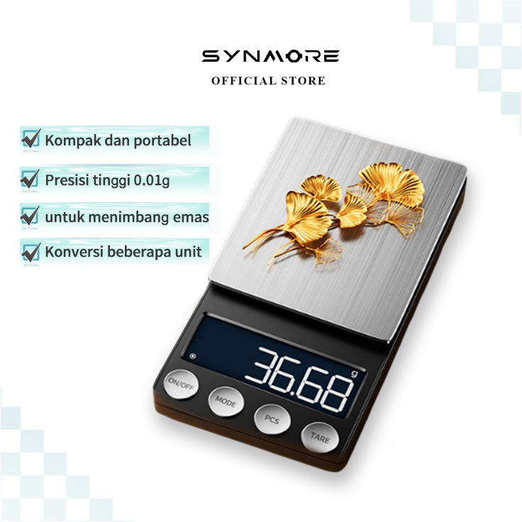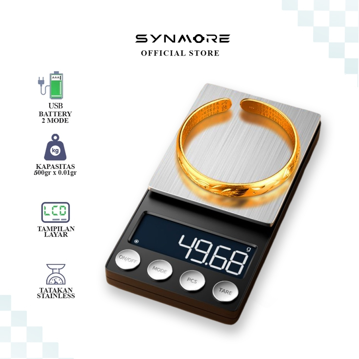 Synmore Timbangan perhiasan emas akik digital 500 gram akurasi 0.01 gram USB Rechargeable