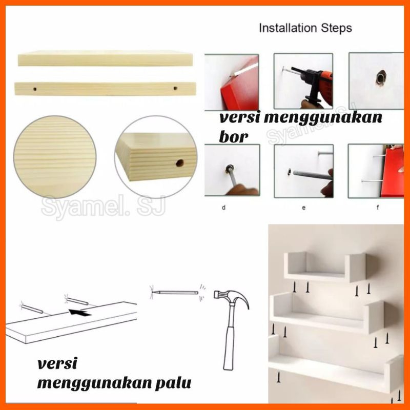 AMBALAN RAK DINDING MODEL U,RAK MELAYANG,LEBAR 12 CM.1 SET 3 PCS ,PANJANG,60.50.40 CM