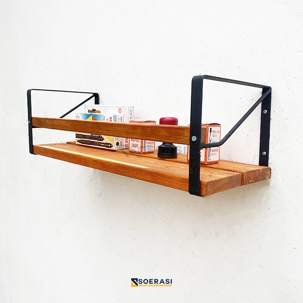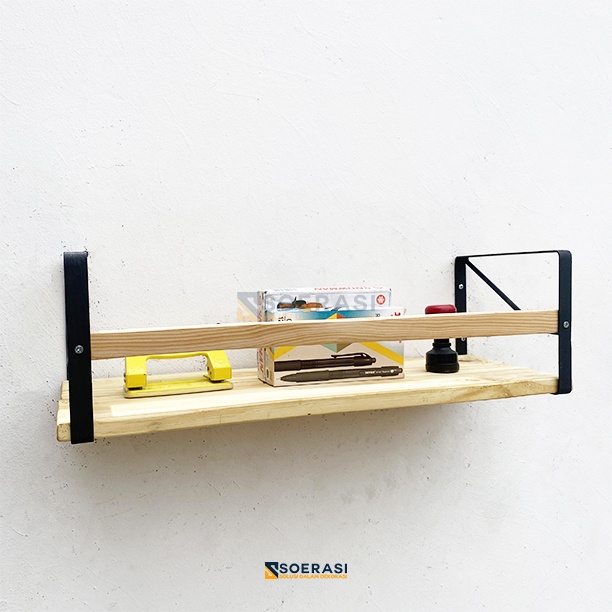 FIGURE Rak Dinding Tempel Gantung Ruang Kerja Kantor Ambalan Susun Kayu dan Besi Penyimpanan Alat Tulis Buku Dokumen Hia