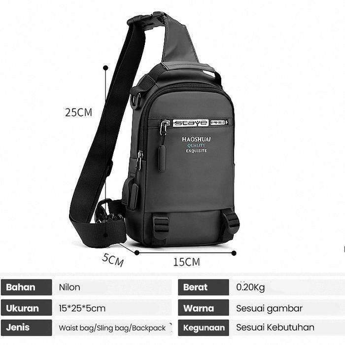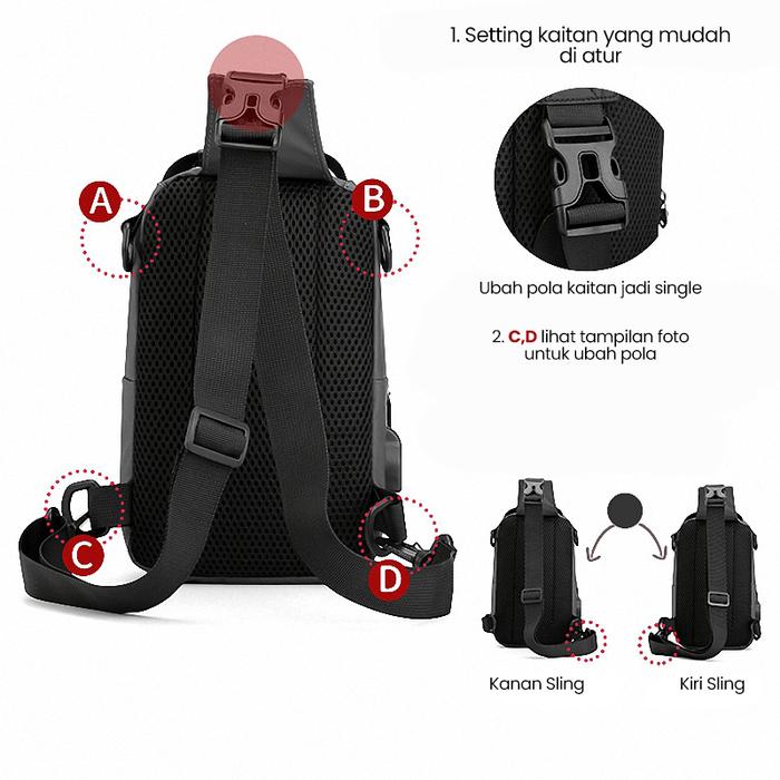 TECHDOO TAS SELEMPANG PRIA USB CHARGER SLING BAG MULTIFUNGSI TS706 - HITAM