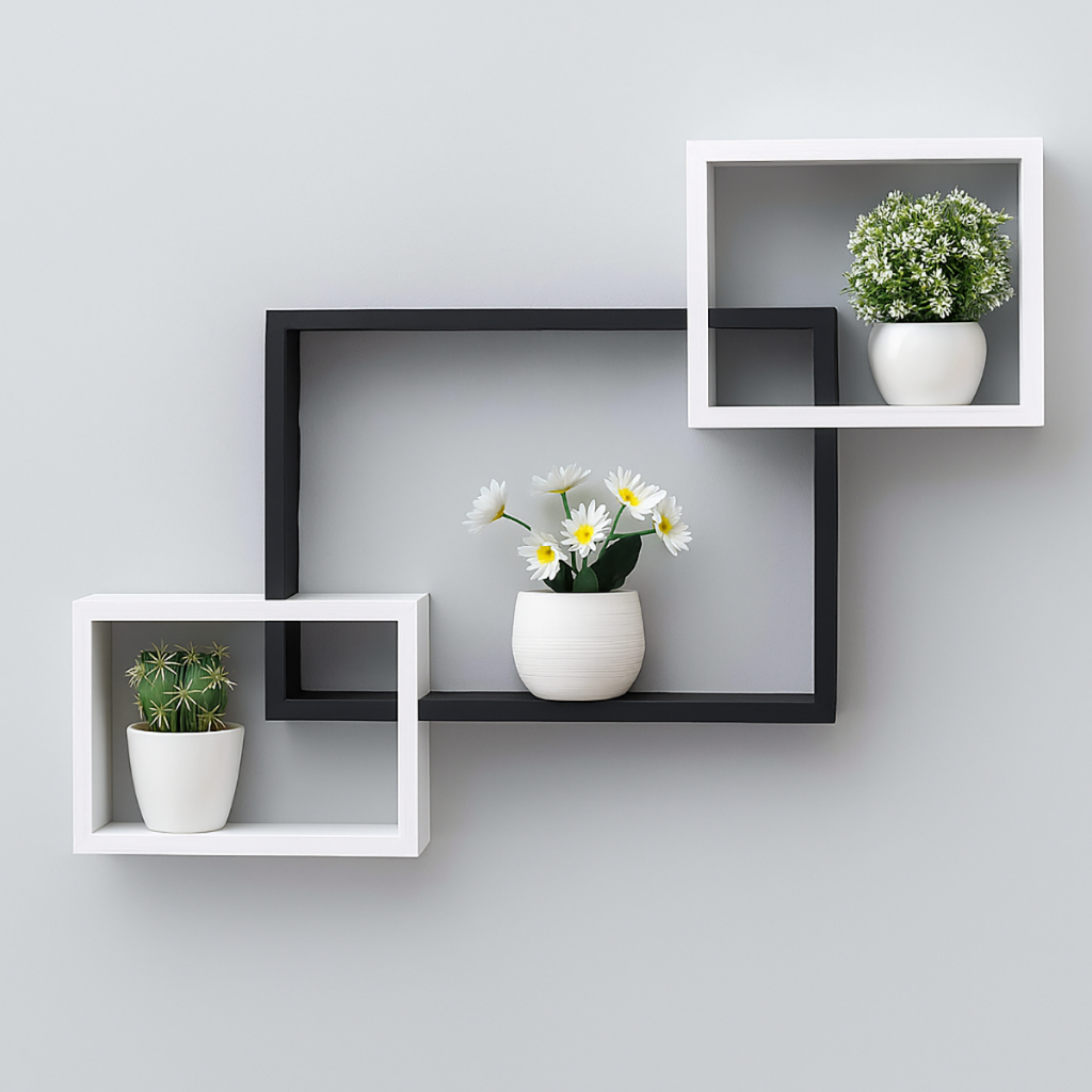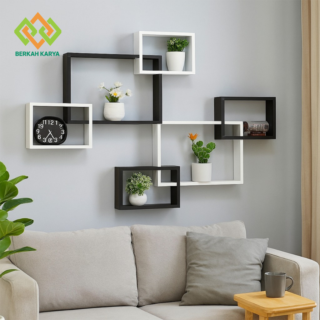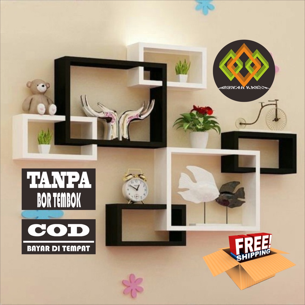 Rak Dinding Tempel 3 Kotak Minimalis Serbaa – Kotak Hiasan Dinding Kamar/Ruang Tamu – Tanpa Bor