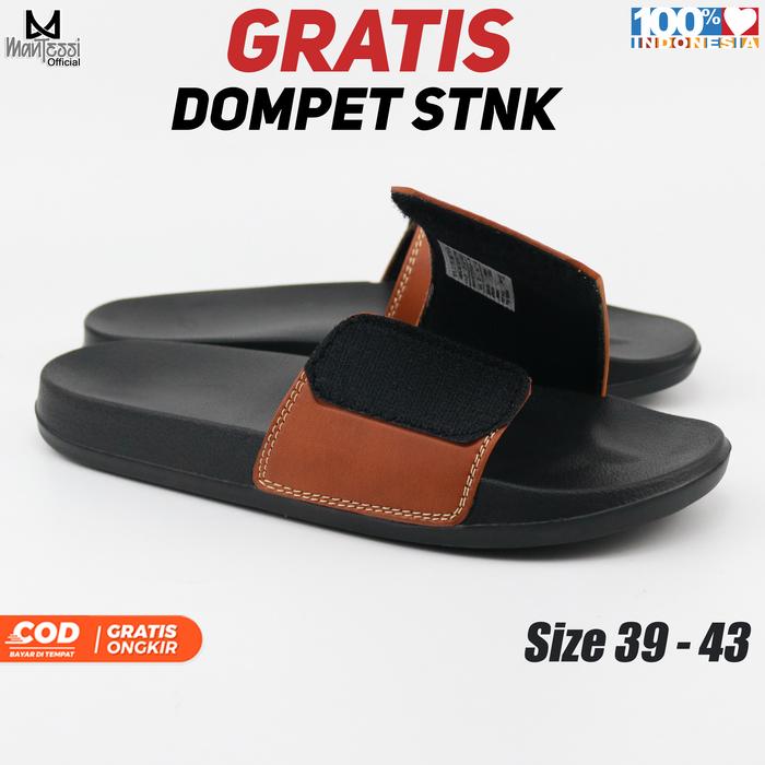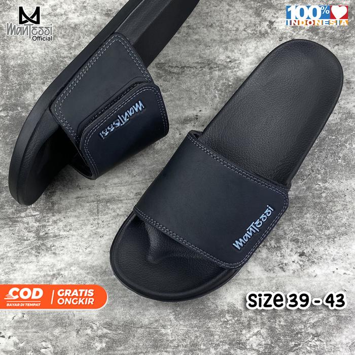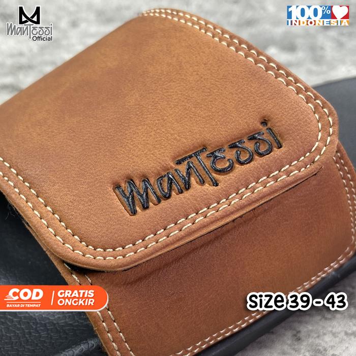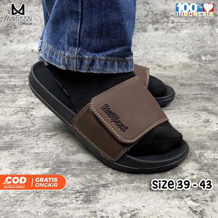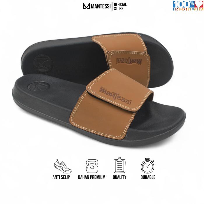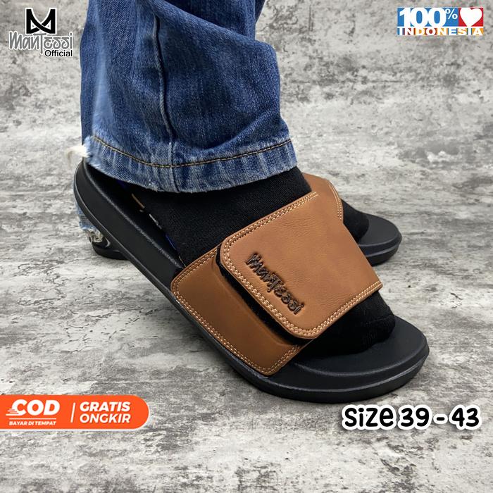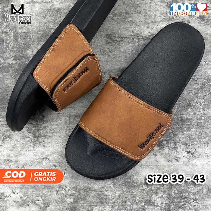 MANTESSI SANDAL SLOP PRIA SLIP ON SLIDE - ORIGINAL SANDAL SELOP PRIA WANITA (VELLKRO) SENDAL - TAN, 39
