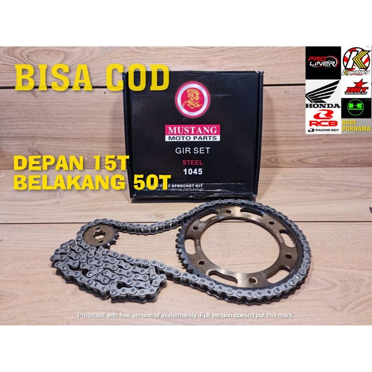 GIGI TARIK KOMPLIT - GEAR SET CRF150, 15T/50T, 15T-49T SEPUHAN BAKARAN MUSTANG THX HKW