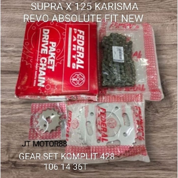 Gear Gir Tarik Set Komplit Supra X 125 Karisma Fit New 428 106 14 36T