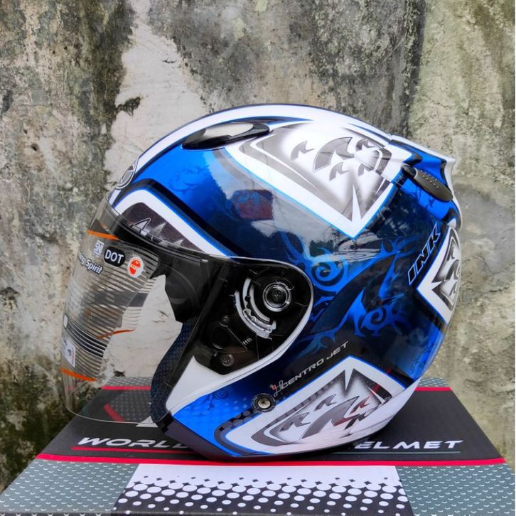 Promo Helm INK Original Terra 2 Dynamio Centro Original Helm Ink Centro Jet Motif #6 White Blue Dan White Red