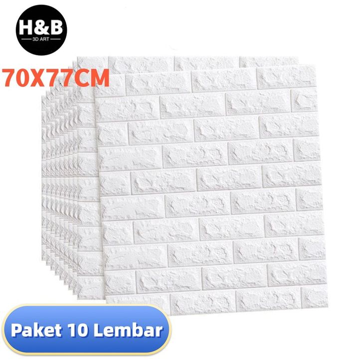 Hiasan Dinding hiasan Paket 10 Lembar!Wallpaper Dinding 3D Foam 70x77cm Motif Batu Bata Stiker Dinding Timbul Classic B