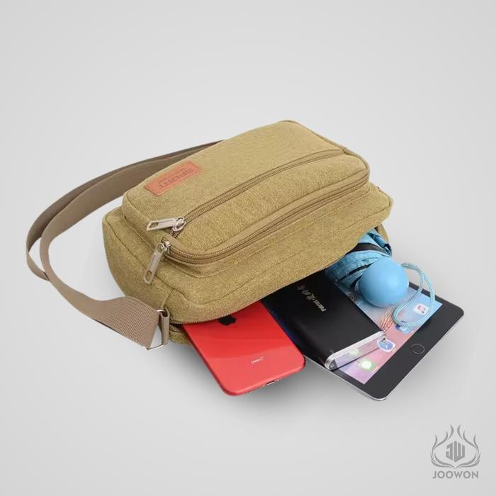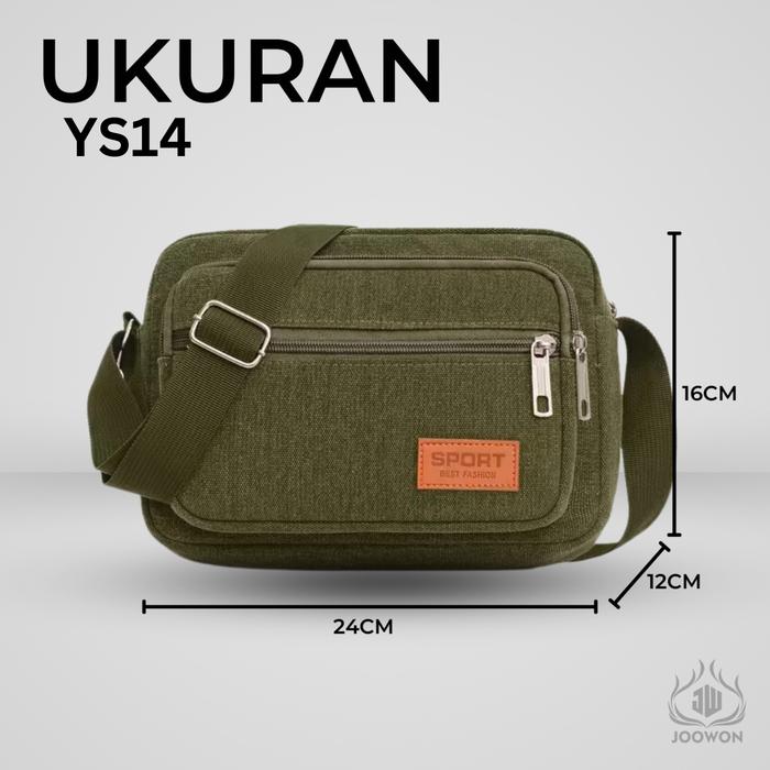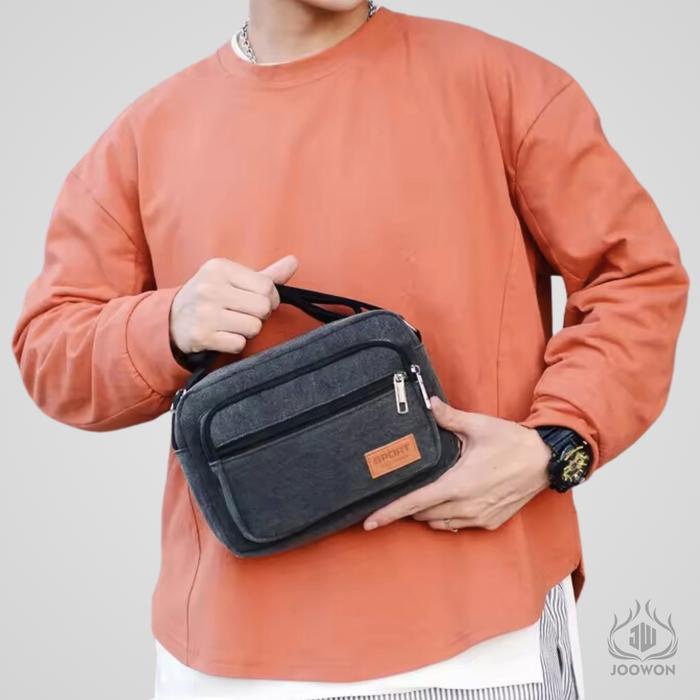 JOOWON TAS SELEMPANG PRIA WANITA SLINGBAG FASHIONABLE - YS14 KANVAS - HITAM