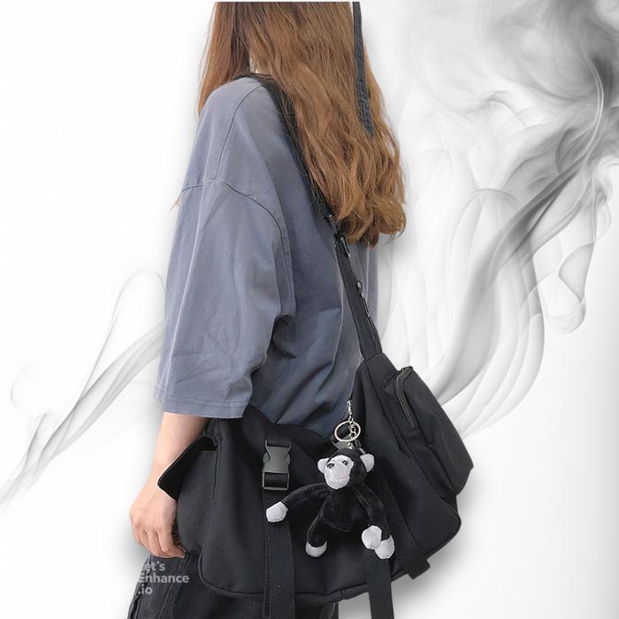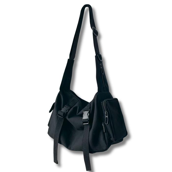 [BELI LOKAL] SATU ALAT ACADEMY TAS SELEMPANG BAHAN KANVAS TEBAL PREMIUM - HITAM