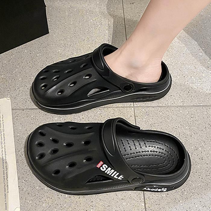 GREENLAND SANDAL KODOK PRIA ANTI SLIP – BAHAN KARET BERKUALITAS, NYAMAN & STYLISH UNTUK CASUAL & RUMAH HSN201 - HITAM, 38-39