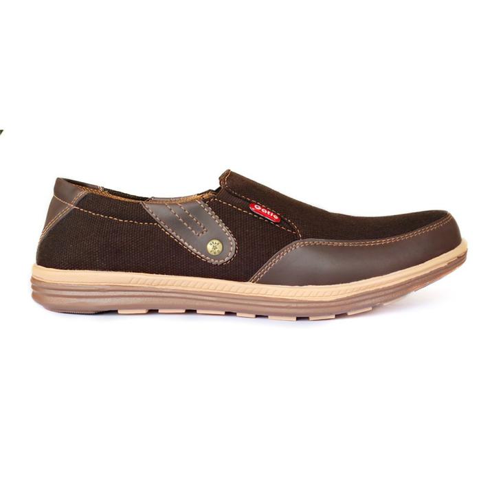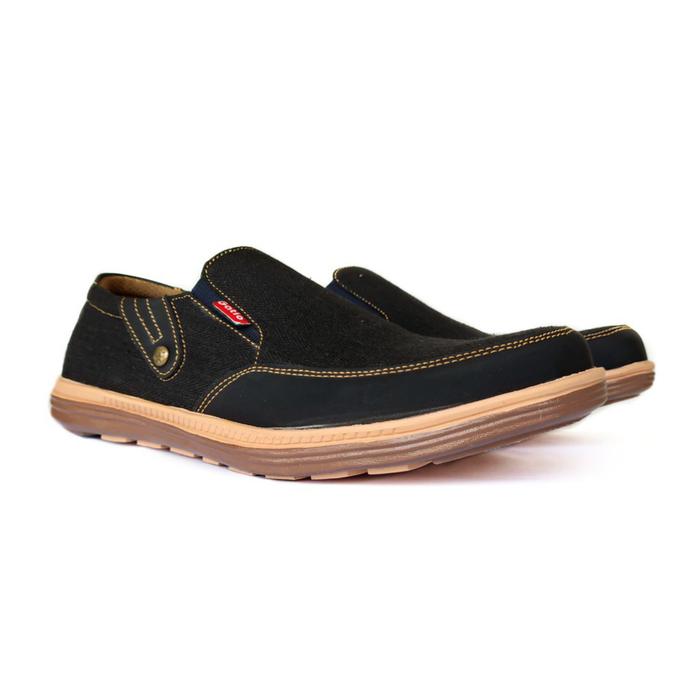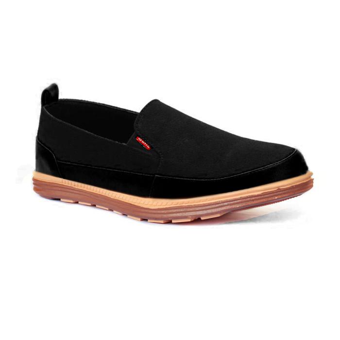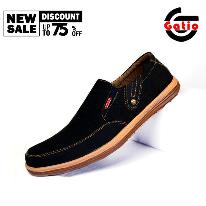 GATIO BK02 SEPATU PRIA SNEAKERS SHOES FLAT KASUAL TANPA TALI KERJA - HITAM, 39