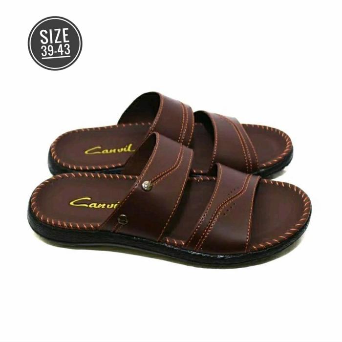 PROMO SANDAL KULIT PRIA MURAH SANDAL CASUAL SANTAI PRIA TERLARIS - SLOP COKLAT, 39