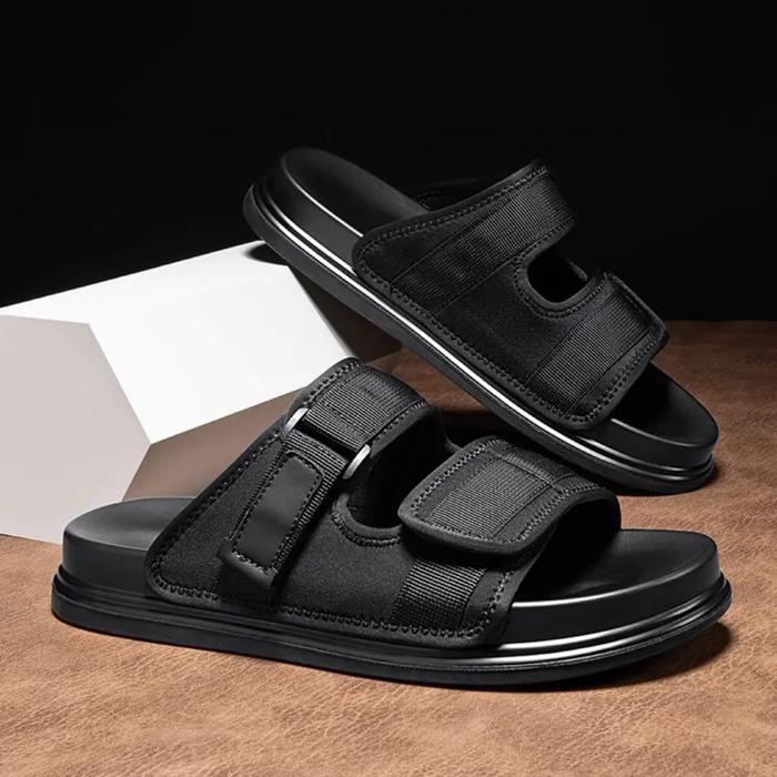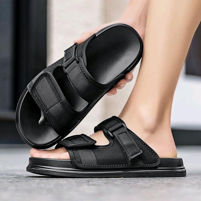 LATIDO SANDAL SELOP PRIA WANITA KAZUO SLOP SLIP ON CASUAL GUNUNG KEKINIAN SENDAL PANTAI COWOK SELOP KARET KASUAL SHOES SANDAL PRIA KEKINIAN - KAZUO BLACK, 36