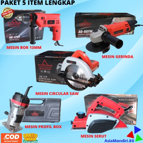 PAKET (5 ITEM) TUKANG KAYU mesin circular saw YUKIDO + mesin serut + bor listrik 10mm + Grenda 4inch + mesin profil YUKI