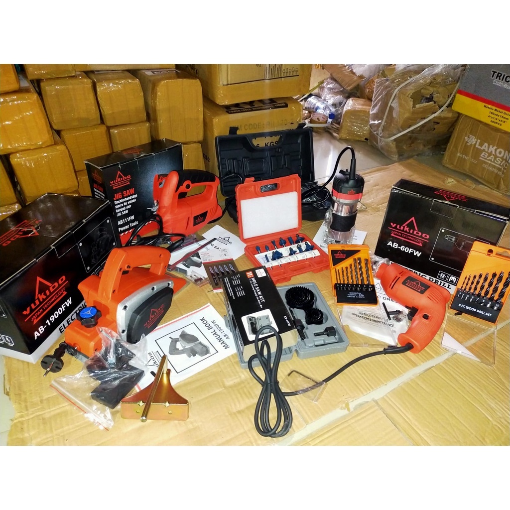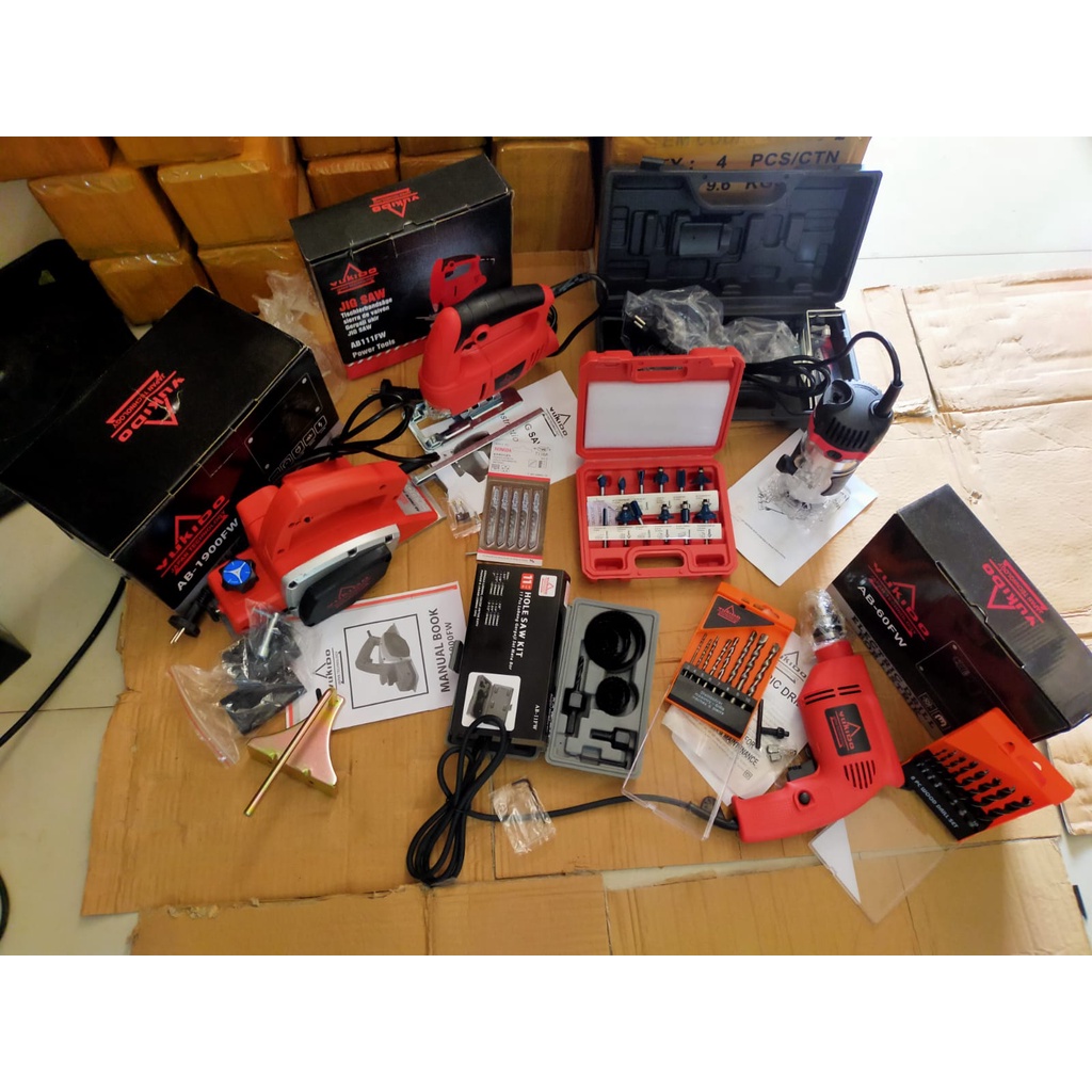 PAKET TUKANG KAYU MURAH!!!! Mesin Profil KAYU + Mesin Serut + Mesin Circular Saw + Mesin BOR 10MM + MESIN JIGSAW kualita