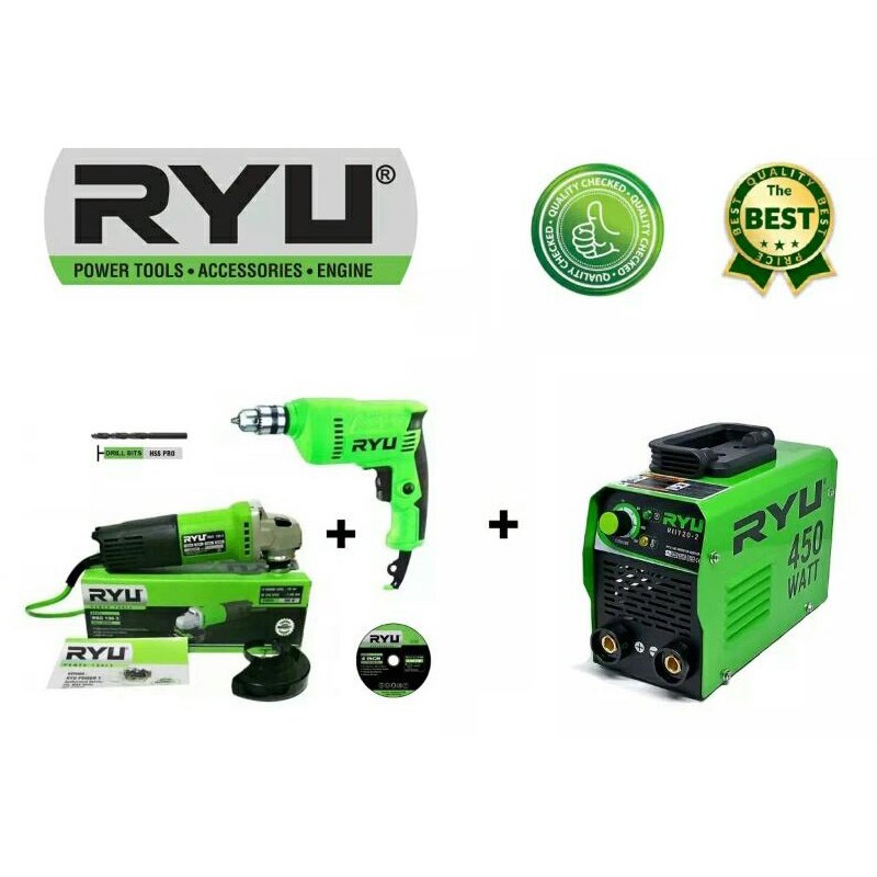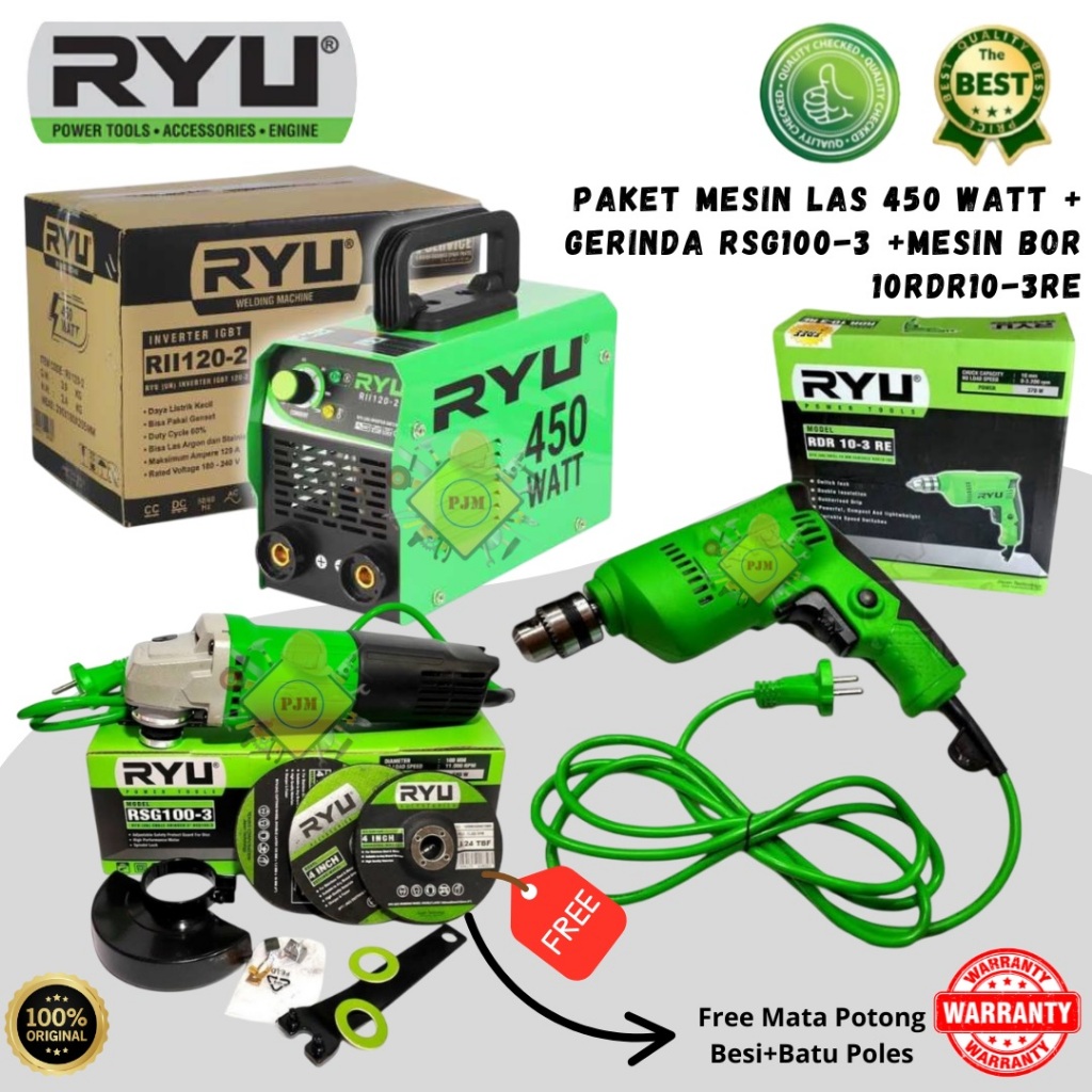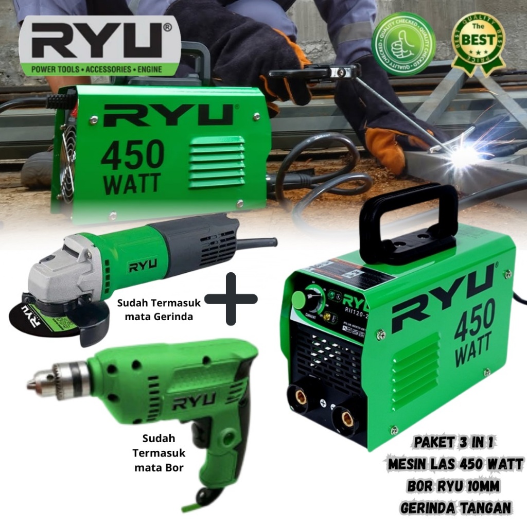 Paket Hemat Mesin Las 450 Watt Ryu RII 120-2 Travo Las RII 120-2 + Bor Ryu Besi Kayu RDR-3 10 Mm Bor Bolak Balik 2 Arah