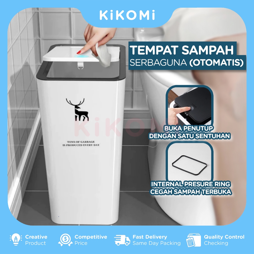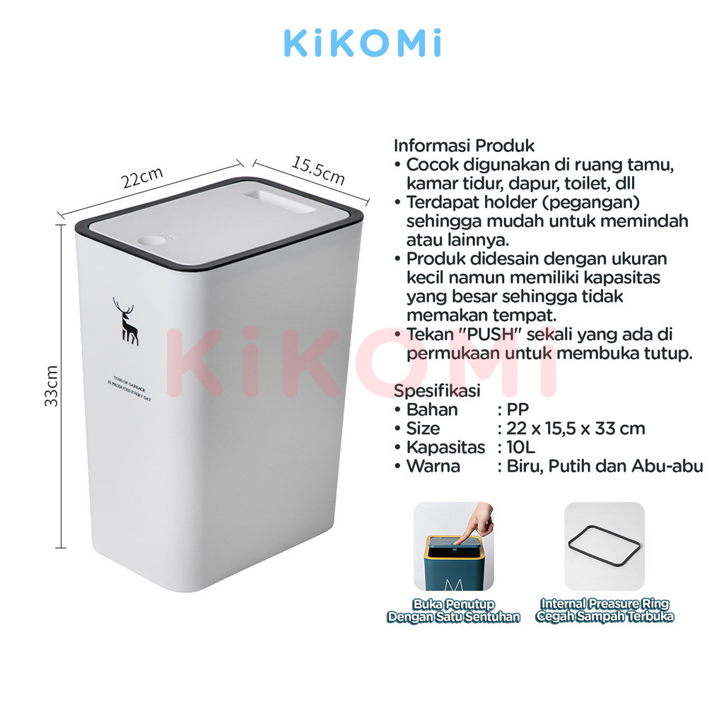 Tempat Sampah Minimalis Bentuk Persegi Kapasitas 10 Liter Tong Sampah Plastik Klik Otomatis - KK