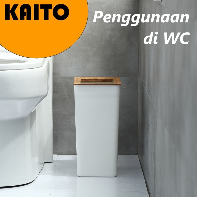 <KAITO>Tempat Sampah Putih Tutup Kayu Minimalis Trash Bin Wooden Bamboo Cover Tong Sampah Estetik