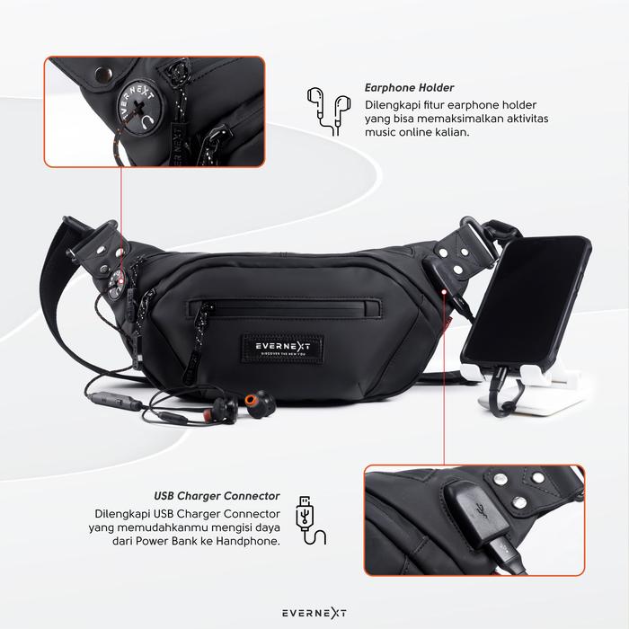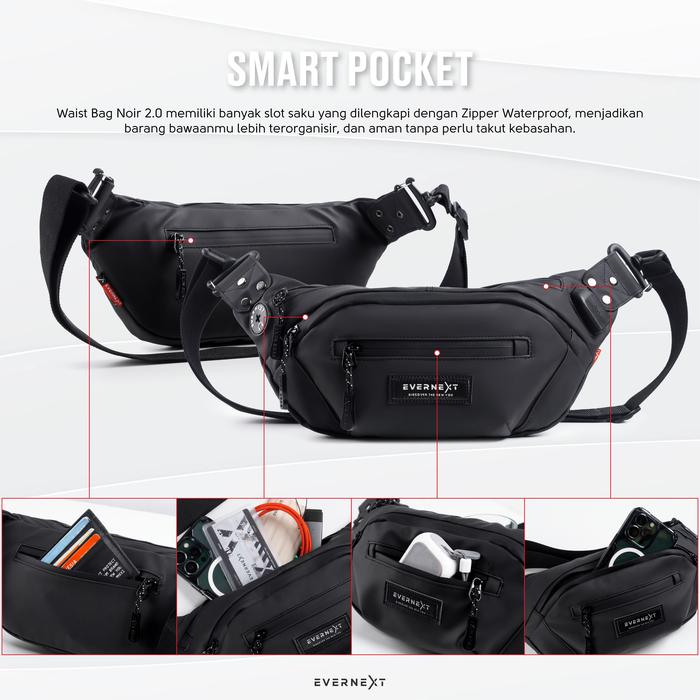 EVERNEXT - TAS SELEMPANG ANTI AIR WAIST BAG WATERPROOF NOIR SLING BAG DISTRO PRIA - PRO(ANTIAIR)