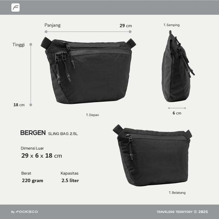 FOCKSCO BERGEN SLING BAG 2.5LITER TAS SELEMPANG & BAHU MULTIKOMPARTEMEN - BAG ONLY
