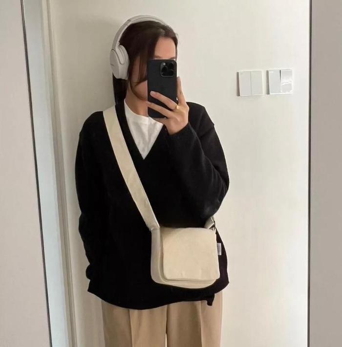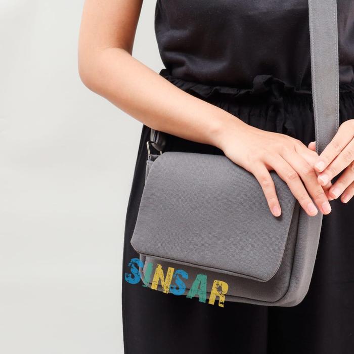 HAKO BAG / TAS SELEMPANG PRIA WANITA MINI KANVAS SLINGBAG CANVAS MUAT HP VIRAL 2023 FREE PIN COWOK CEWEK - PUTIH