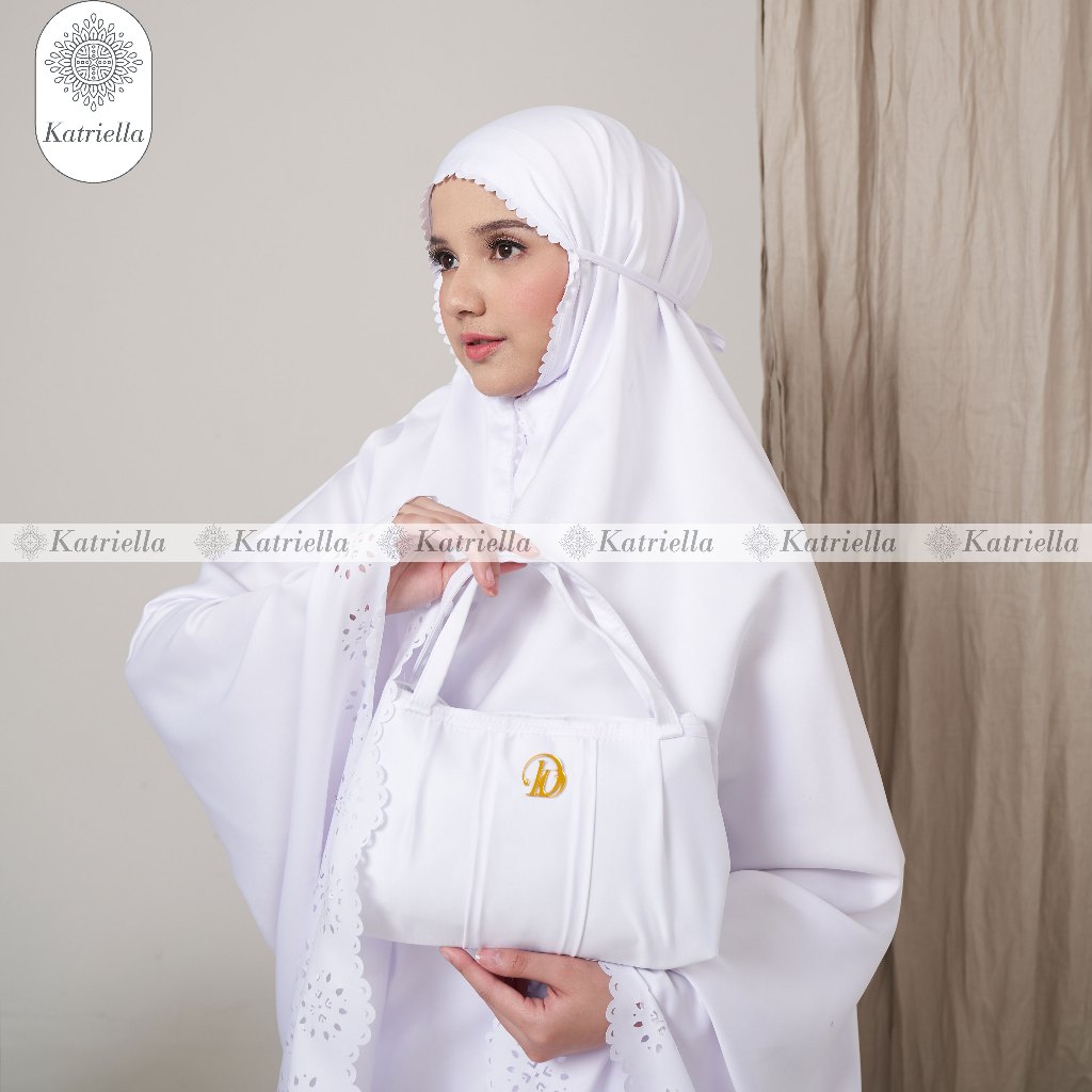 MUKENA DEWASA DAILY LASER CUT SILKY 2 IN 1 RESLETING PENUTUP DAGU MALAY STLYE BY KATRIELLA
