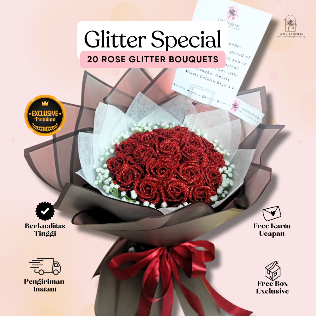 bucket 20 Kuntum Glitter Rose Soap Buket Bunga Sabun Hadiah Wisuda Anniversary Ulang Tahun Custom terlaris