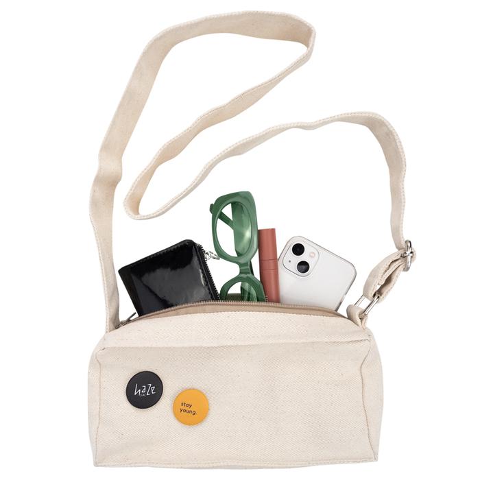 HAZESAC BOXY BAG CREAM - TAS SHOULDER/SLING BAG KANVAS KECIL BENTUK PERSEGI WARNA CREAM UNISEX CANVAS SELEMPANG PRIA PRIA TAS SELEMPANG - CREAM