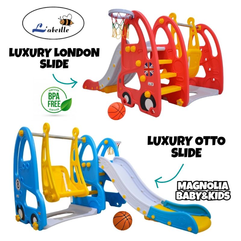 LABEILLE Perosotan Ayunan Luxury LONDON BUS & OTTO Slide | Labeille KC-517C 519C 3in1 Slide Swing & Basketball