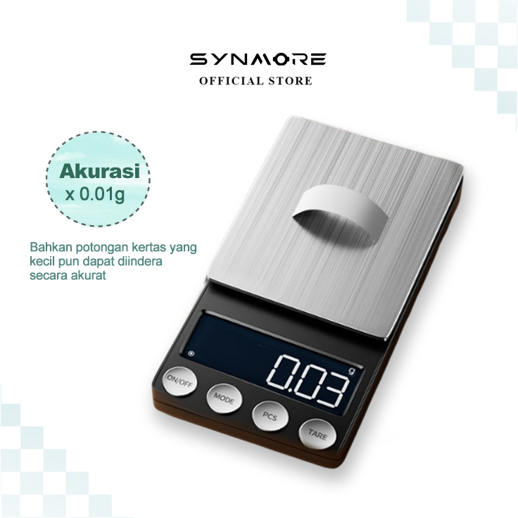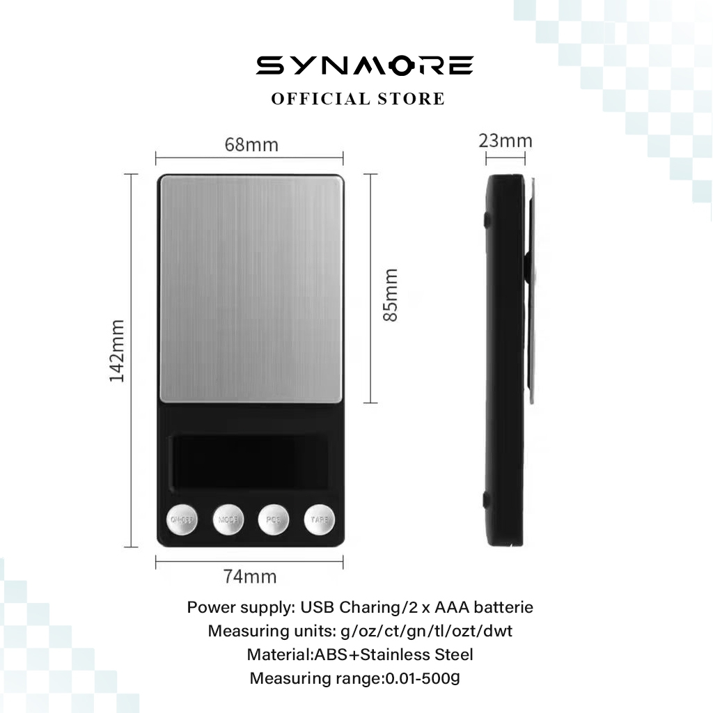 Synmore Timbangan perhiasan emas akik digital 500 gram akurasi 0.01 gram USB Rechargeable