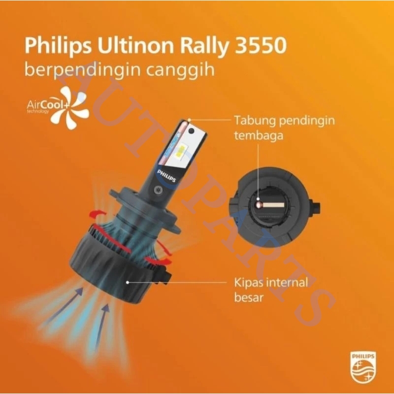 ⚡100% Ori / BISA ⚡Philips LED Ultinon Rally 100 Watt Lampu Mobil 3550 LED HL H4 H7 H11 HB3 HB4 HIR2 12V 24V 50W White Pu