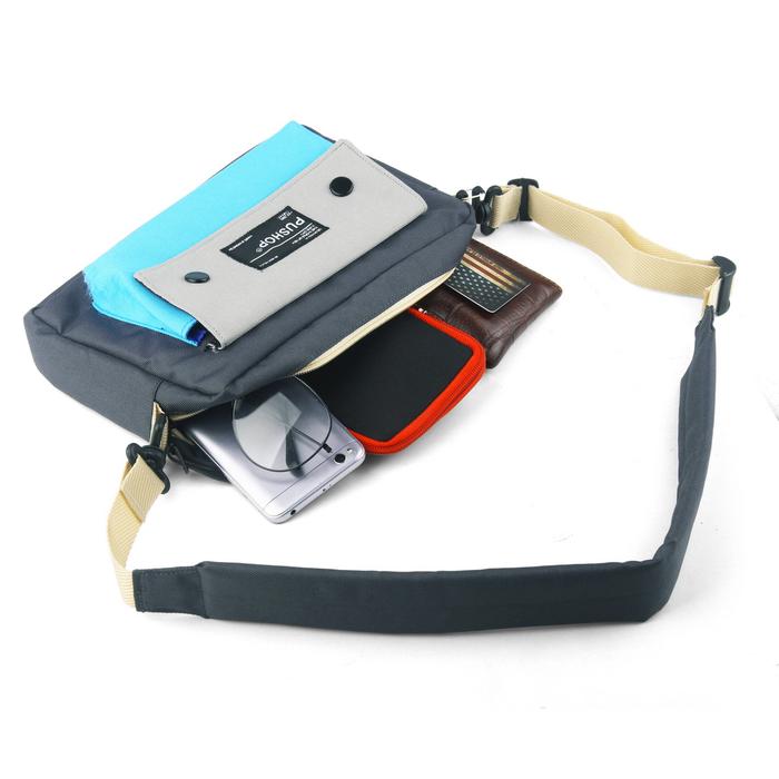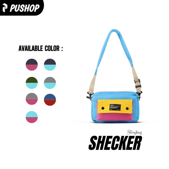 PUSHOP TAS SELEMPANG PRIA WANITA SHECKER - SLINGBAG UNISEKS SLING BAG KASUAL KANVAS - ABU