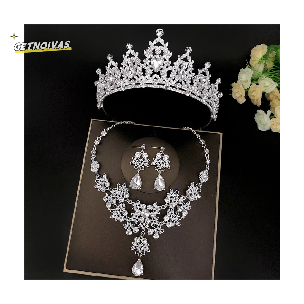Pengantin Tiaras Crown Set dengan Anting Kit & Necklack Buatan Tangan Mewah Kristal Rambut Aksesoris untuk Party Prom Ba