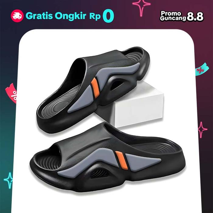 SANDAL KARET PRIA DEWASA KEKINIAN KEREN OUTDOOR MURAH EVA SENDAL SLOP PRIA EMPUK COWOK CASUAL DISTRO ANTI SLIP SANTAI OLAHRAGA TERBARU - BLACK, 39