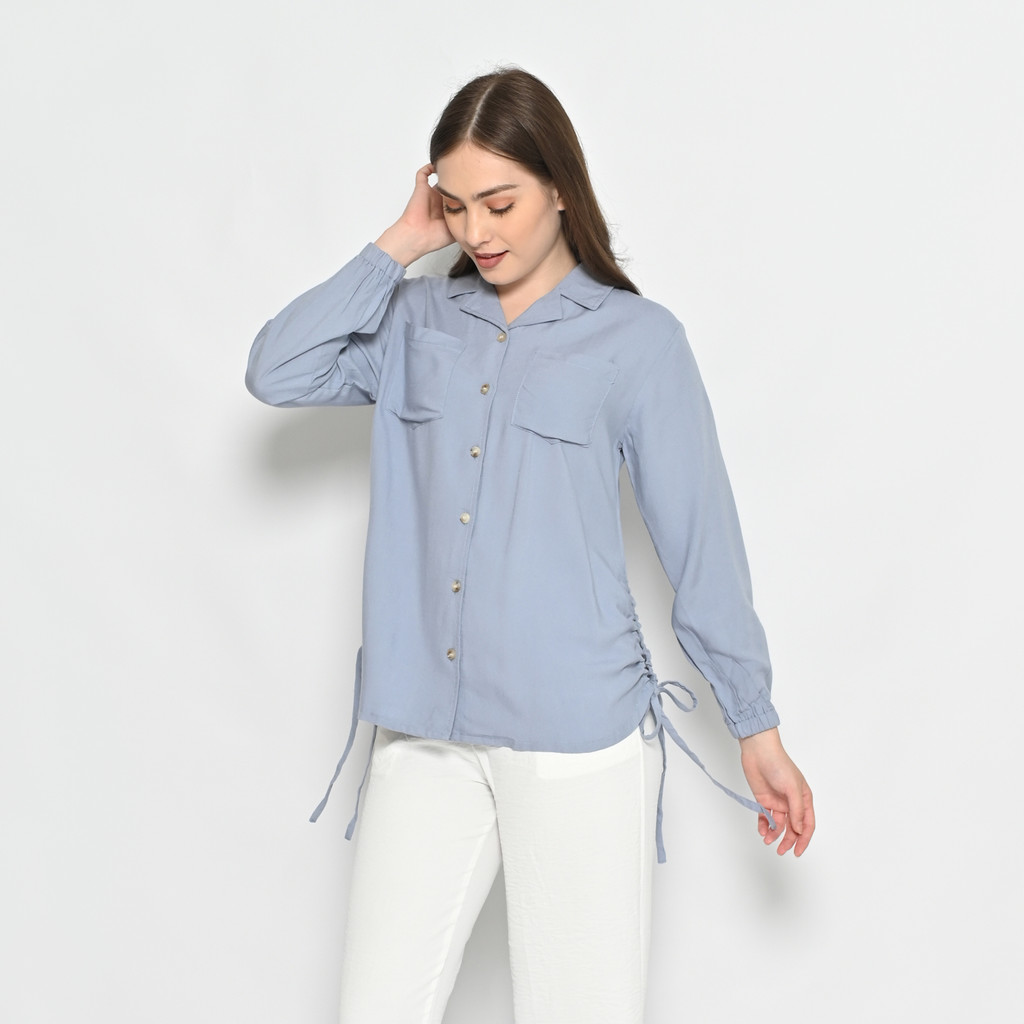 Kemeja Casual Wanita 0184 Katun Rayon Polos Premium Lengan Panjang