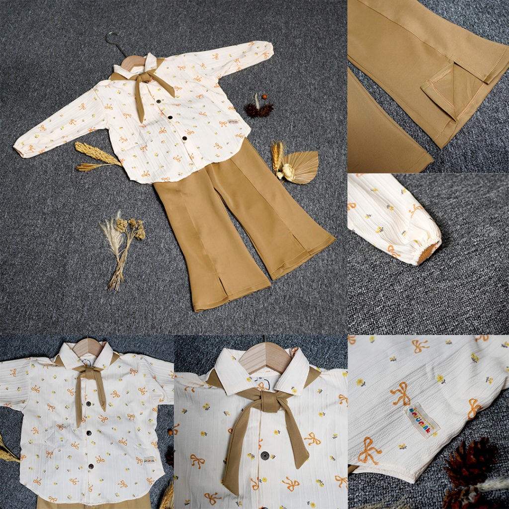 Setelan Baju Anak Perempuan AGATTA Cokelat Umur 2-10 Tahun | Crinkle + Scuba | 4 Motif Cantik - BAP40