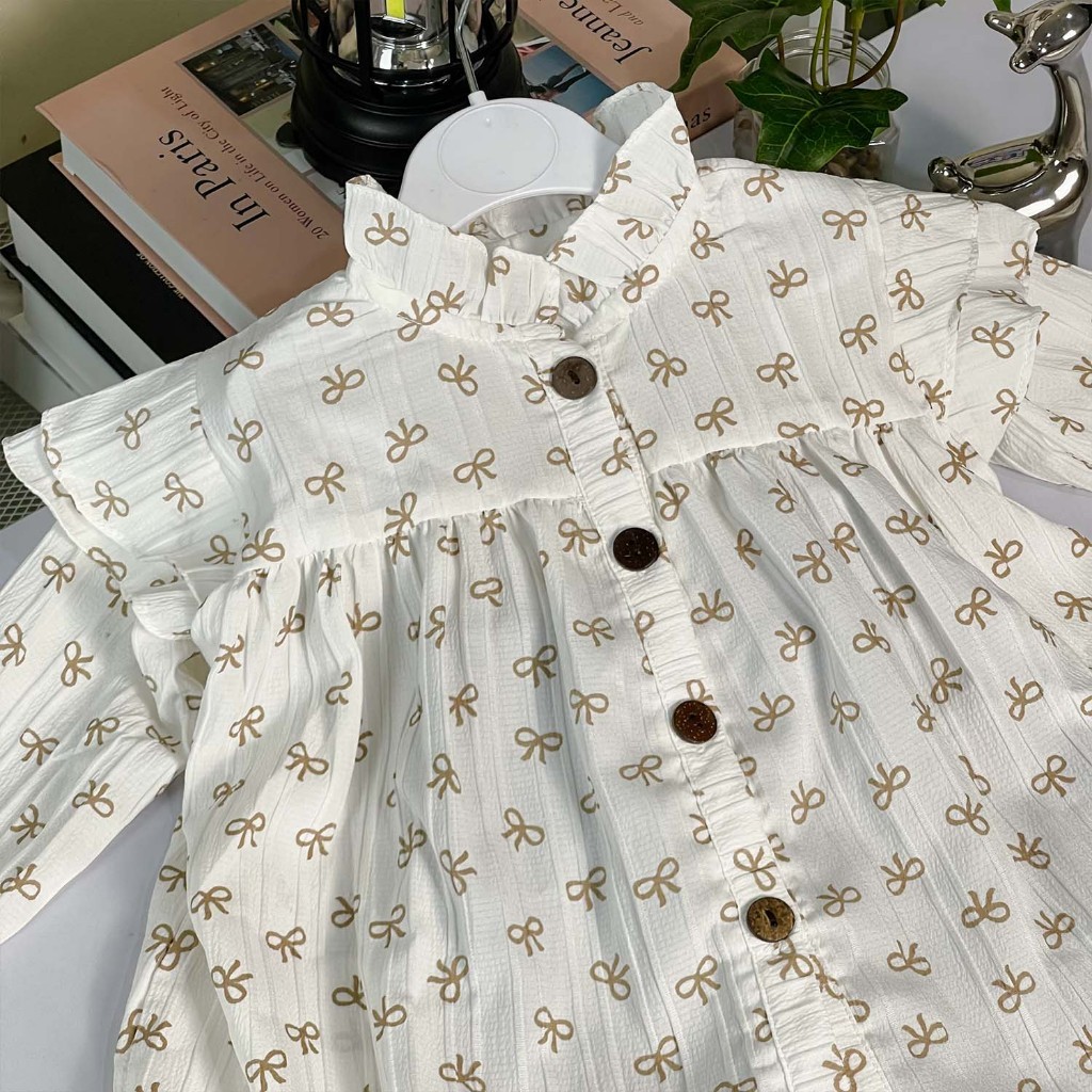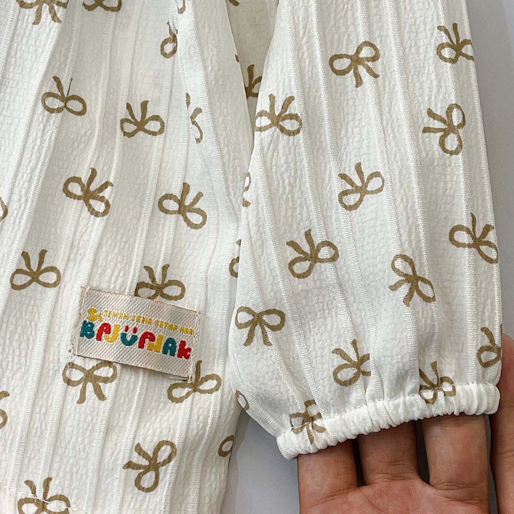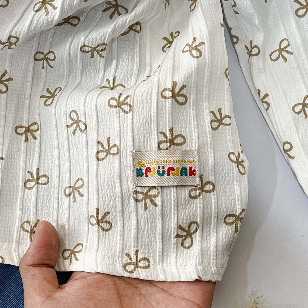NAKEISHA Cokelat Oneset Setelan Baju Anak Perempuan Lengan Panjang Motif Pita Bahan Crinkle Premium Casual Style Celana