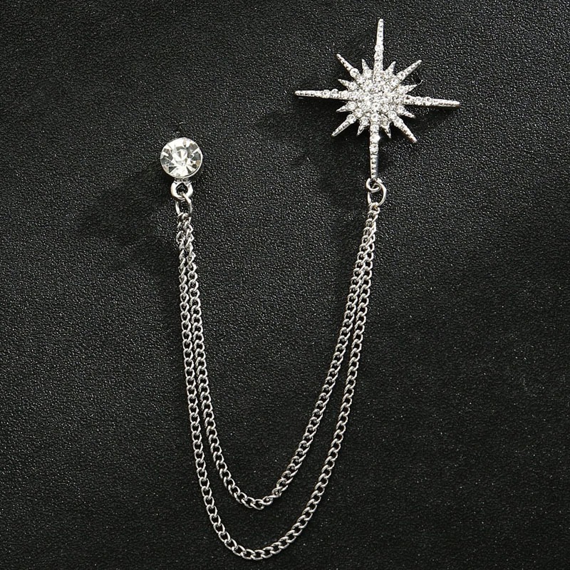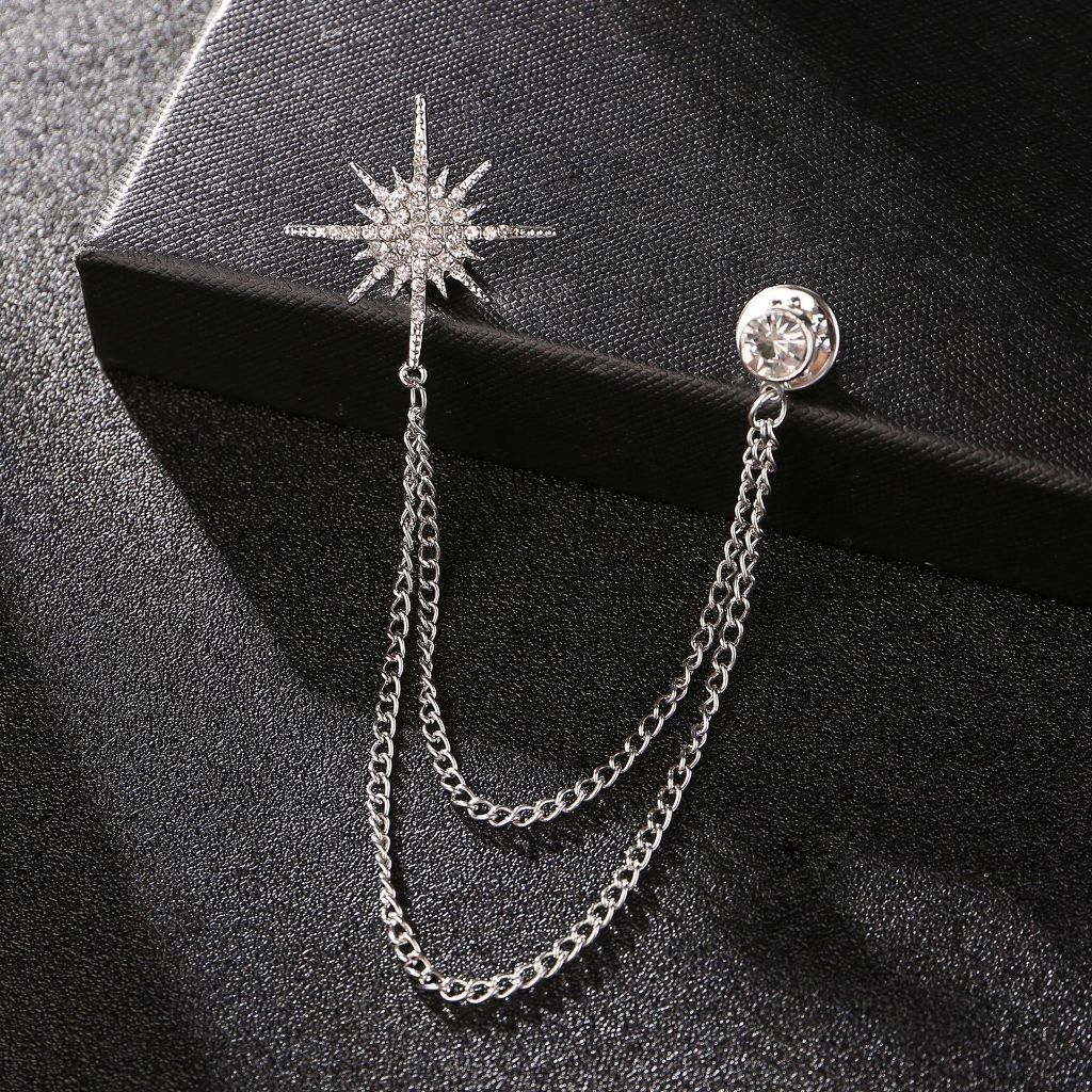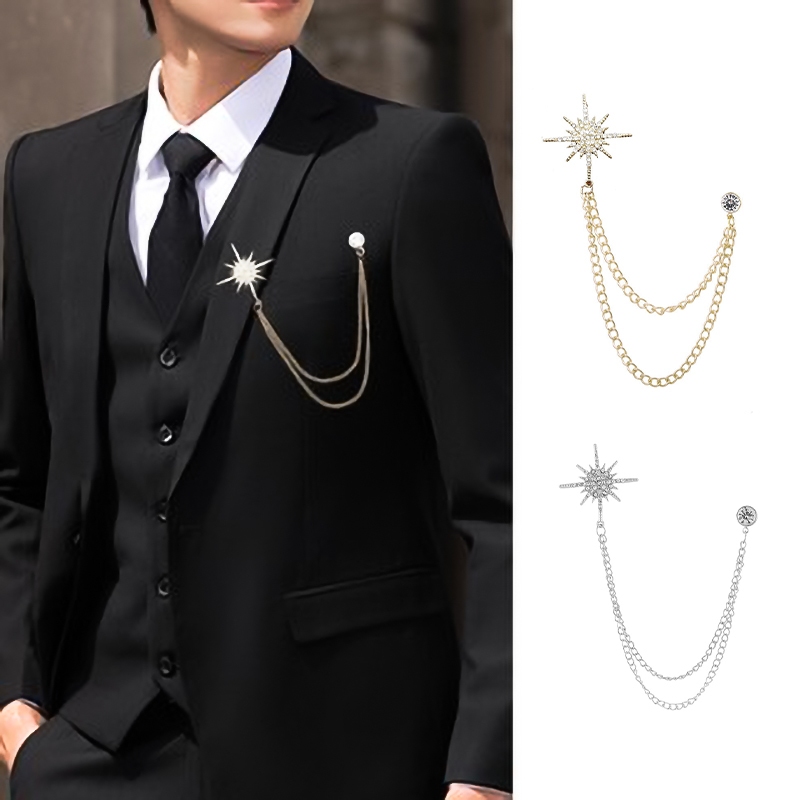 Lapel Pin Bros Jas Rantai Rumbai Bintang Brooch Pria Wanita Aksesoris Jas Untuk Pria