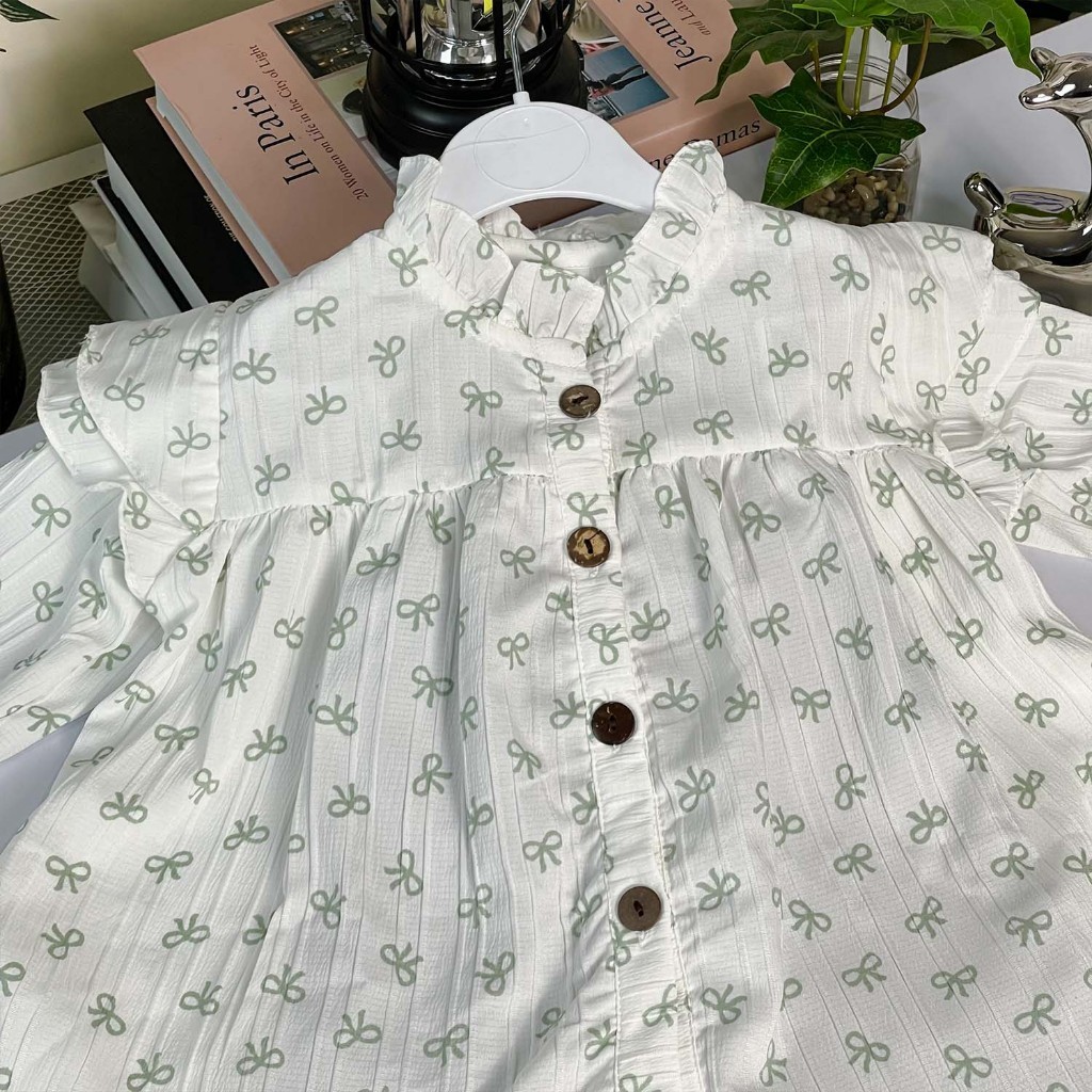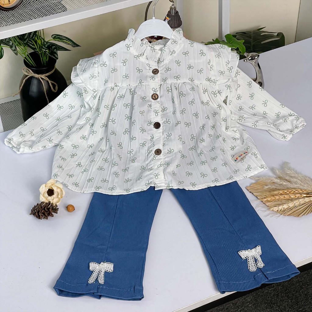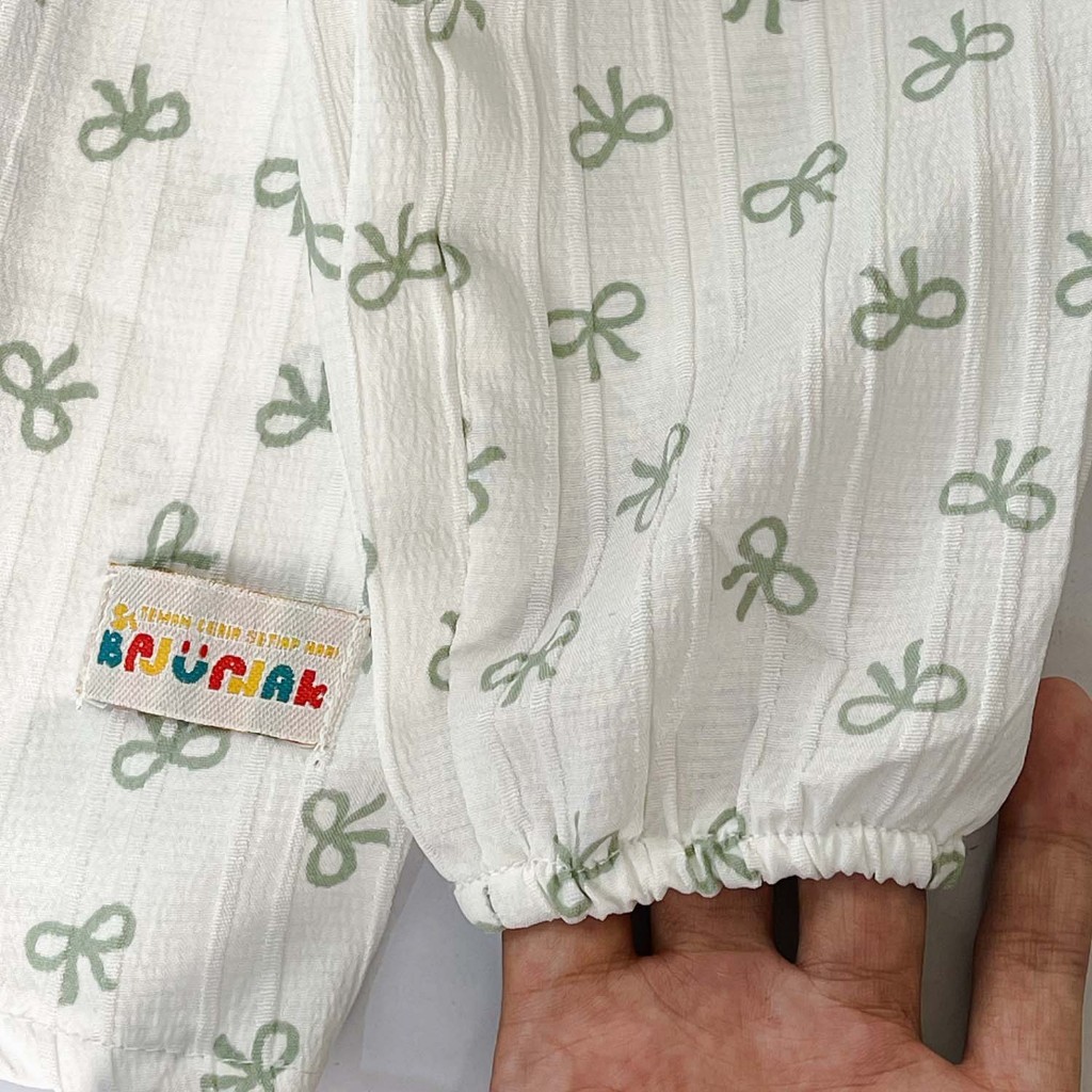 NAKEISHA Hijau Oneset Setelan Baju Anak Perempuan Lengan Panjang Motif Pita Bahan Crinkle Premium Casual Style Celana