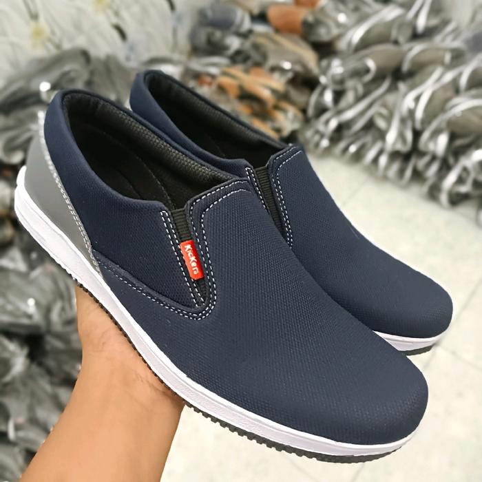 SEPATU CASUAL PRIA SEPATU SANTAI KERJA PRIA HF07 SPORT FLAT SHOES ANTISELIP SIMPEL SANDAL SLIP-ON & SEPATU FLAT - ABU HF 07, UKURAN